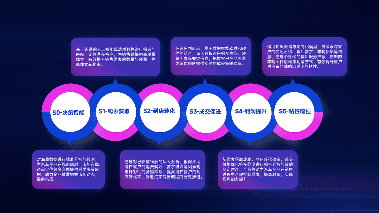 通过拓宽潜在客户来源、、、优化线索分配并提高到店转化率,,,以增强销售效率。。。。同时,,利用线索数据不断优化分析模型,,,有效提升转化率,,扩大营销影响力。。。。